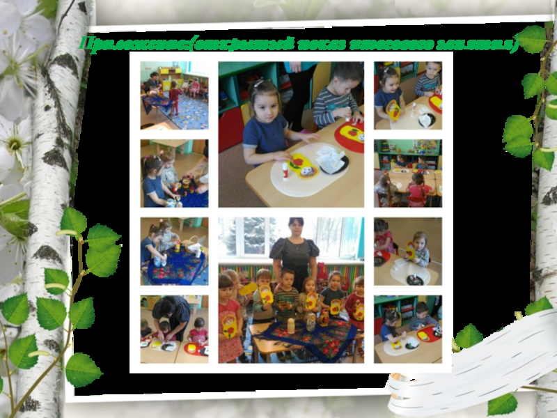 Воспитатель показывает образец, объясняет последовательность выполнения работы. По ходу выполнения детьми работы, напоминает, что наклеивать надо аккуратно, а излишки клея вытирать салфеткой, а, намазав клеем деталь, положить её клеем вниз на лист бумаги и плотно прижать мягкой салфеткой. Во время работы звучат народные мелодии.