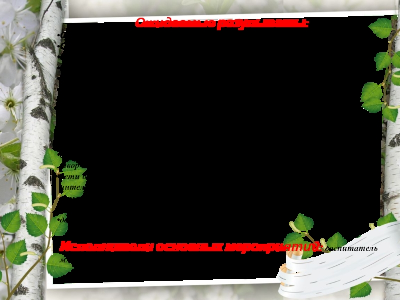 Исполнители основных мероприятий: воспитатель младшей группы, родители.