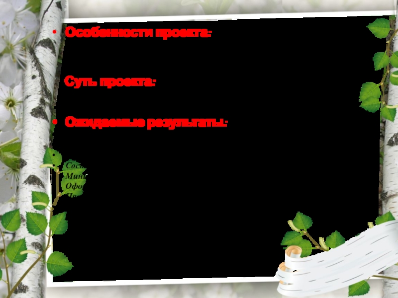 Слайд 7Особенности проекта: в основу проекта положено приобщение детей к русской народной