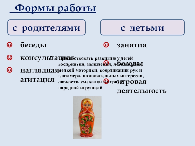 Приобщить родителей к развивающим играм с народной игрушкой