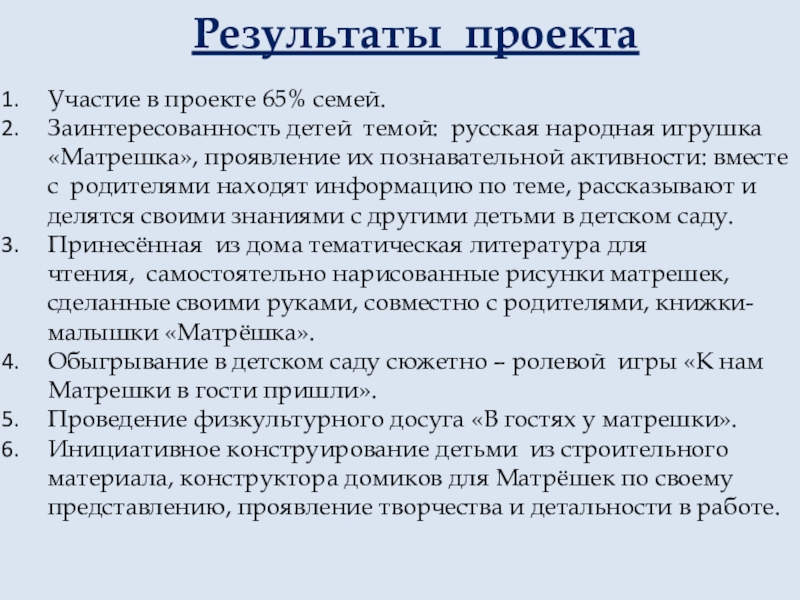 «Матрешка», проявление их познавательной активности: вместе с родителями находят информацию по теме, рассказывают и делятся своими знаниями с другими детьми в детском саду.