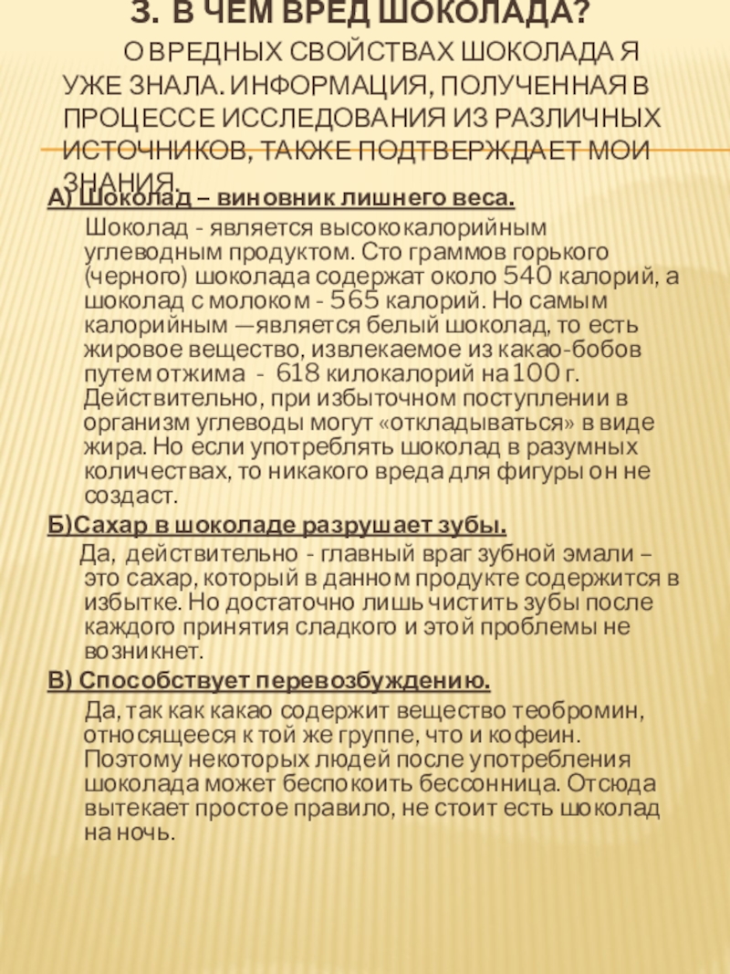 Слайд 9 3. В чём вред шоколада?