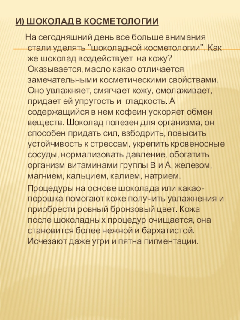 Слайд 16И) Шоколад в косметологии