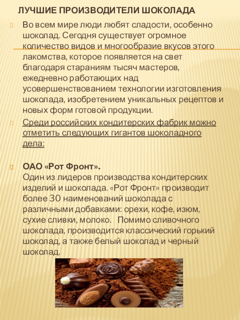 Слайд 6Лучшие производители шоколада