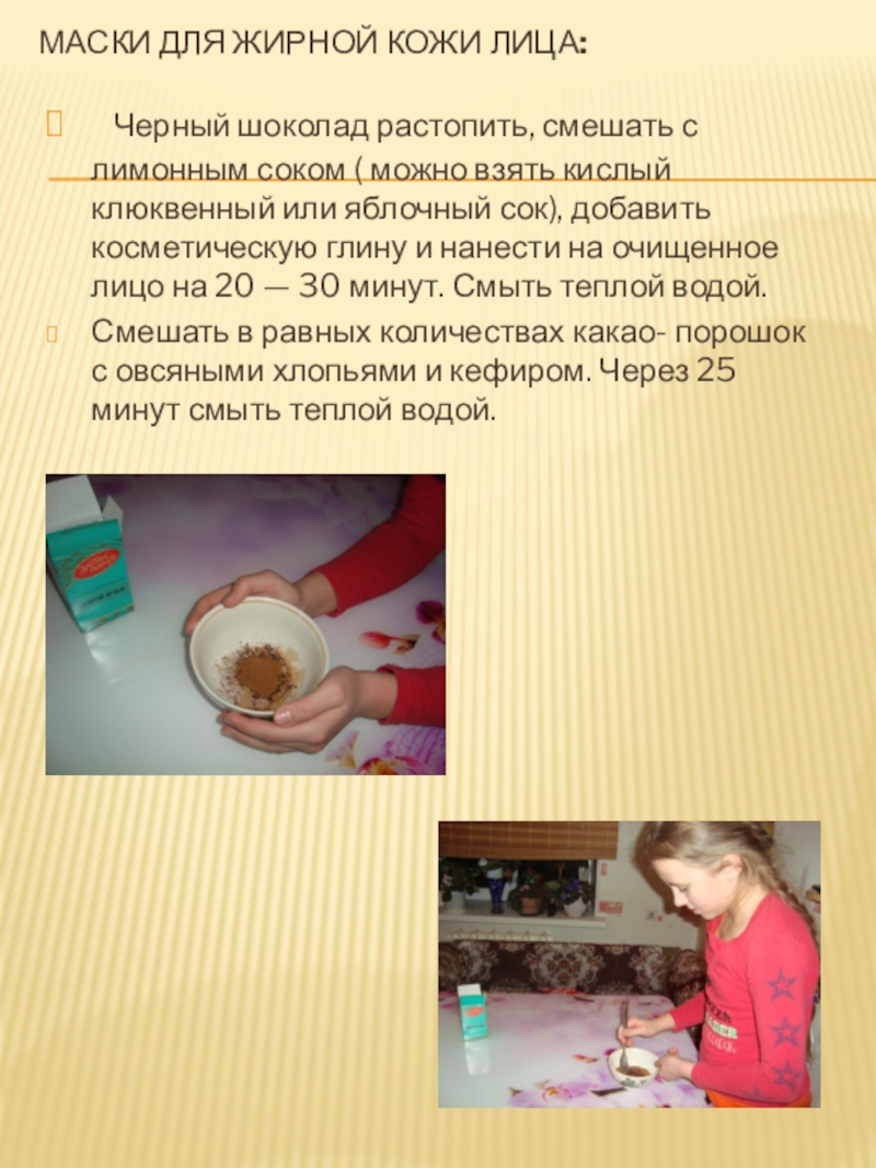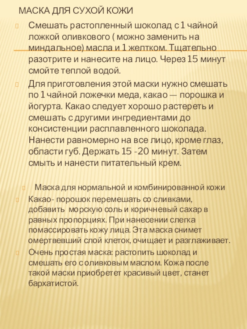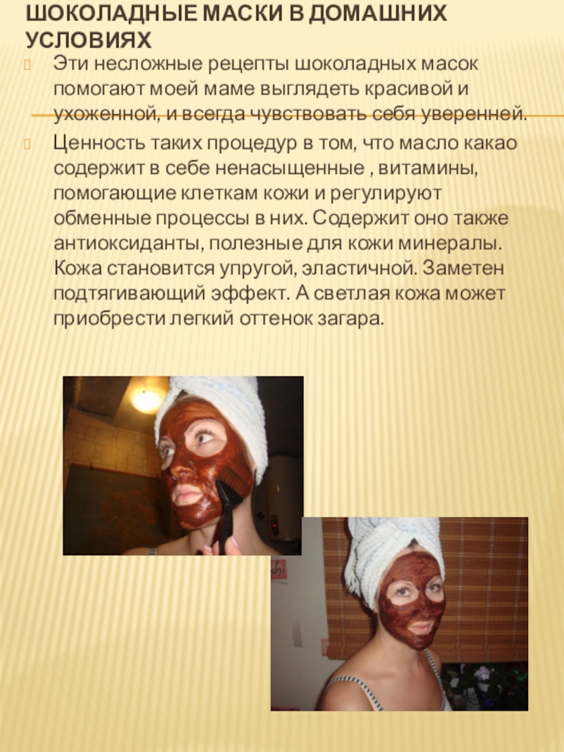 Слайд 25Шоколадные маски в домашних условиях