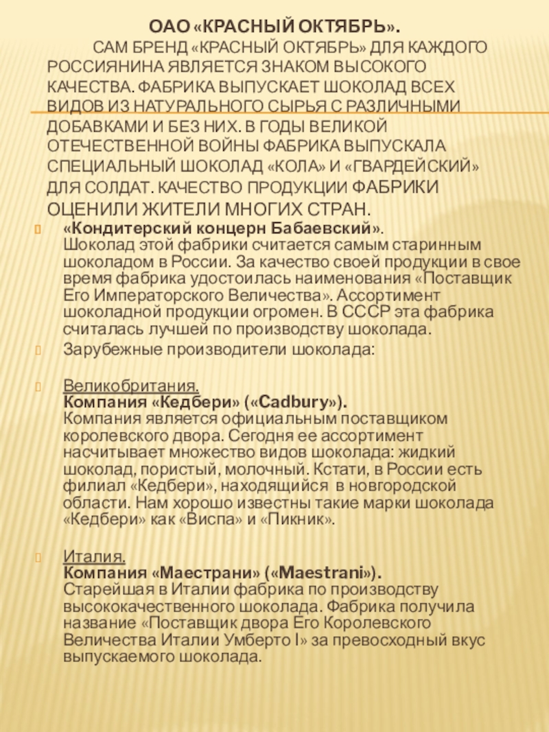 «Кондитерский концерн Бабаевский».