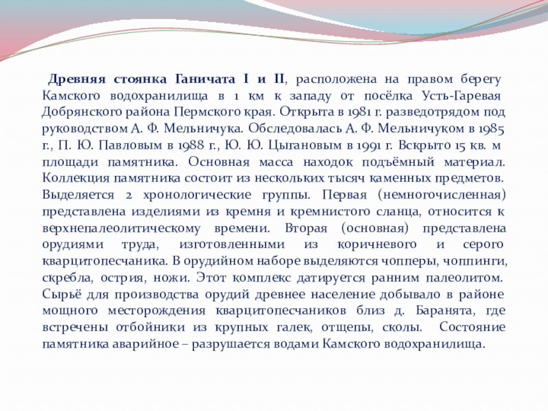 Слайд 4 Древняя стоянка Ганичата I и II, расположена на правом берегу