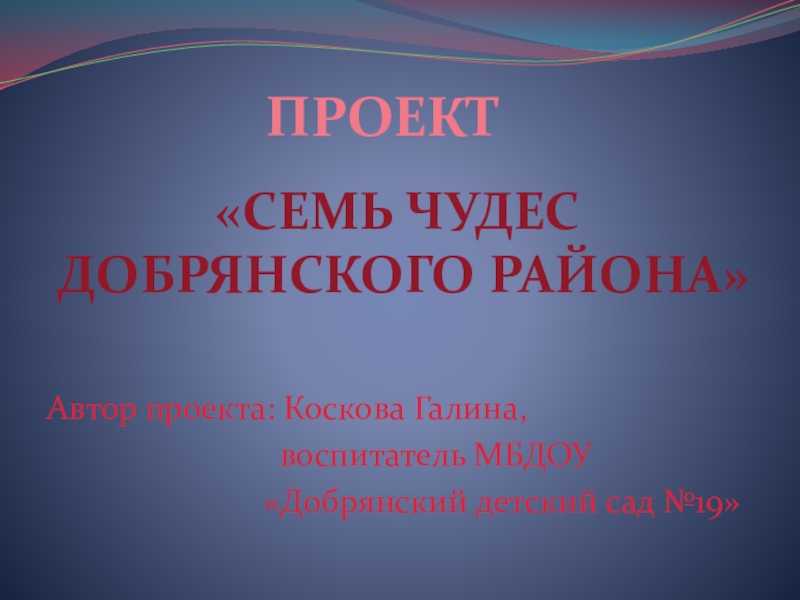 «СЕМЬ ЧУДЕС ДОБРЯНСКОГО РАЙОНА»
