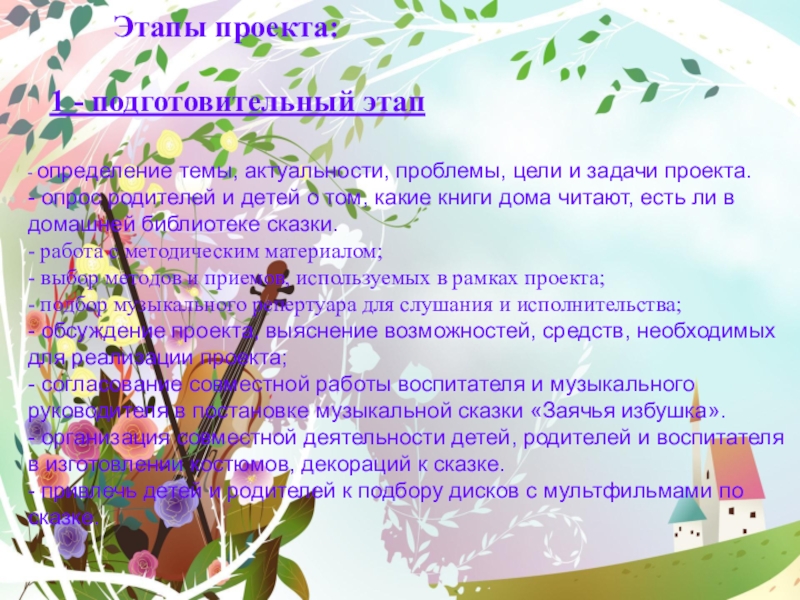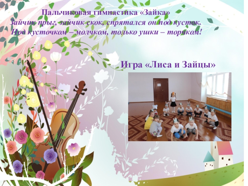 - согласование совместной работы воспитателя и музыкального руководителя в постановке музыкальной сказки «Заячья избушка».