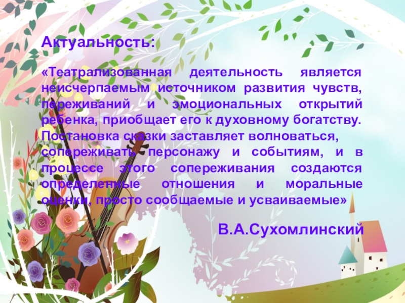 «Театрализованная деятельность является неисчерпаемым источником развития чувств, переживаний и эмоциональных открытий