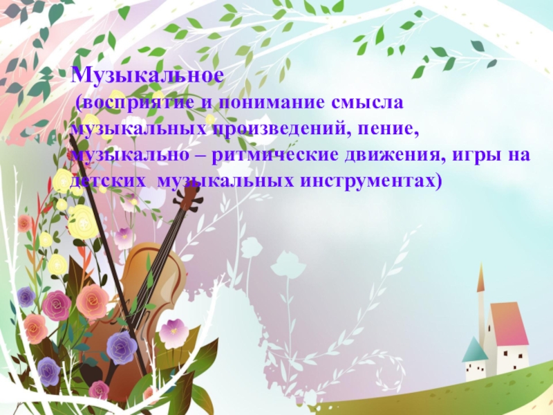 произведений, пение, музыкально – ритмические движения, игры на детских музыкальных инструментах)