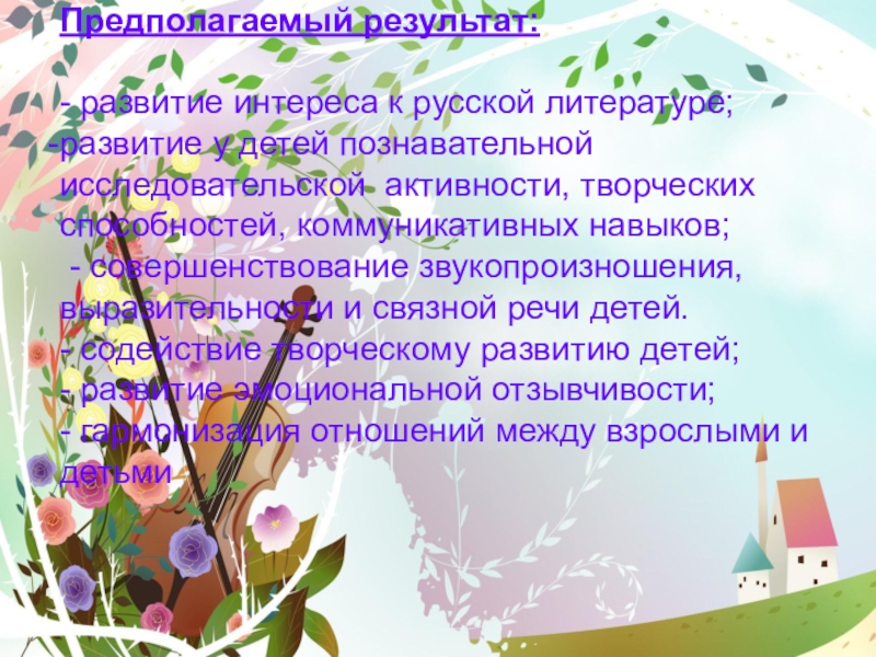 народным сказкам, музыке; устойчивый интерес к различным видам художественной деятельности.