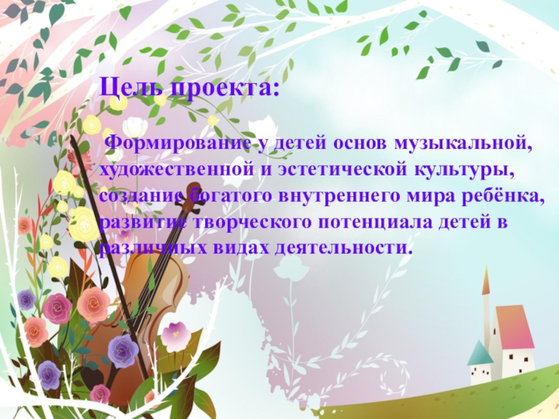 художественной и эстетической культуры, создание богатого внутреннего мира ребёнка, развитие творческого потенциала детей в различных видах деятельности.