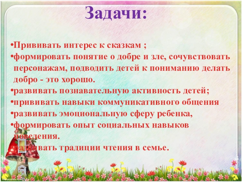 Прививать интерес к сказкам ;