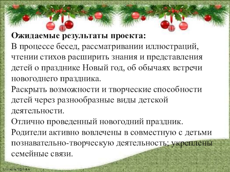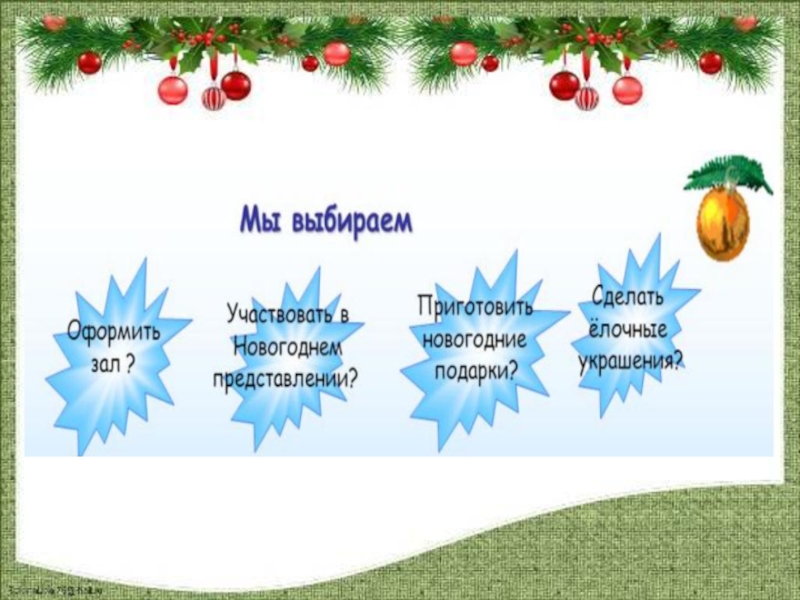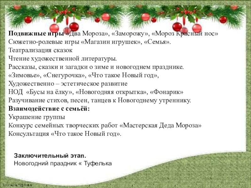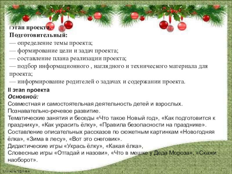 Тематические занятия и беседы «Что такое Новый год», «Как подготовится к празднику», «Как украсить ёлку», «Правила безопасности на празднике».