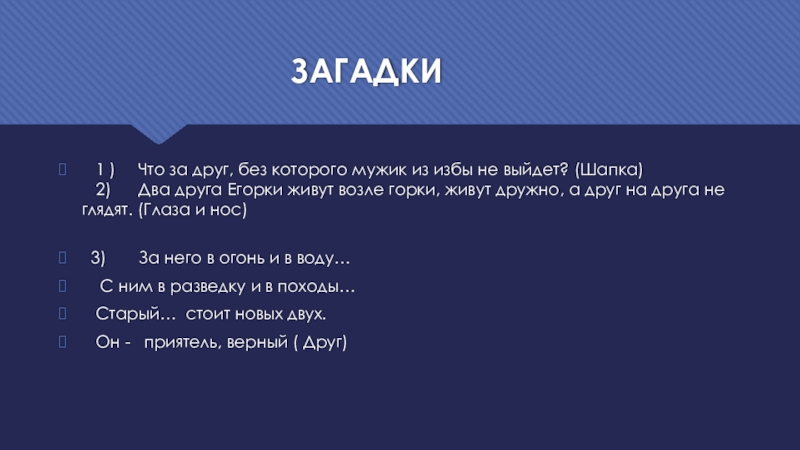 1 ) Что за друг, без которого мужик из избы не выйдет? (Шапка)