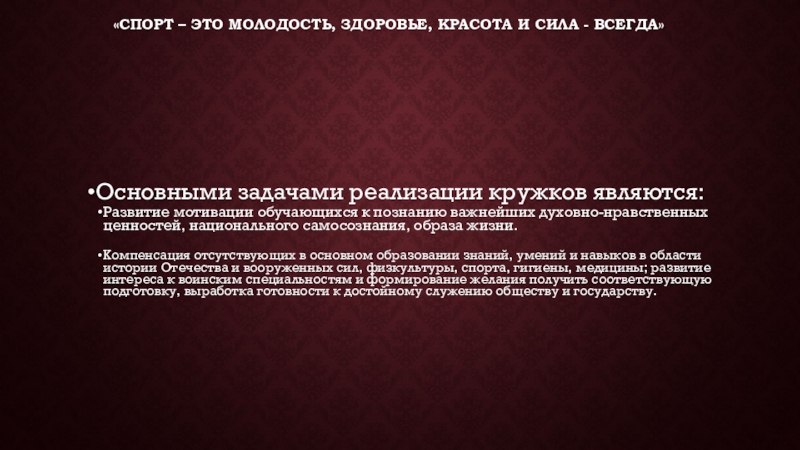«Спорт – это молодость, здоровье, красота и сила - всегда»