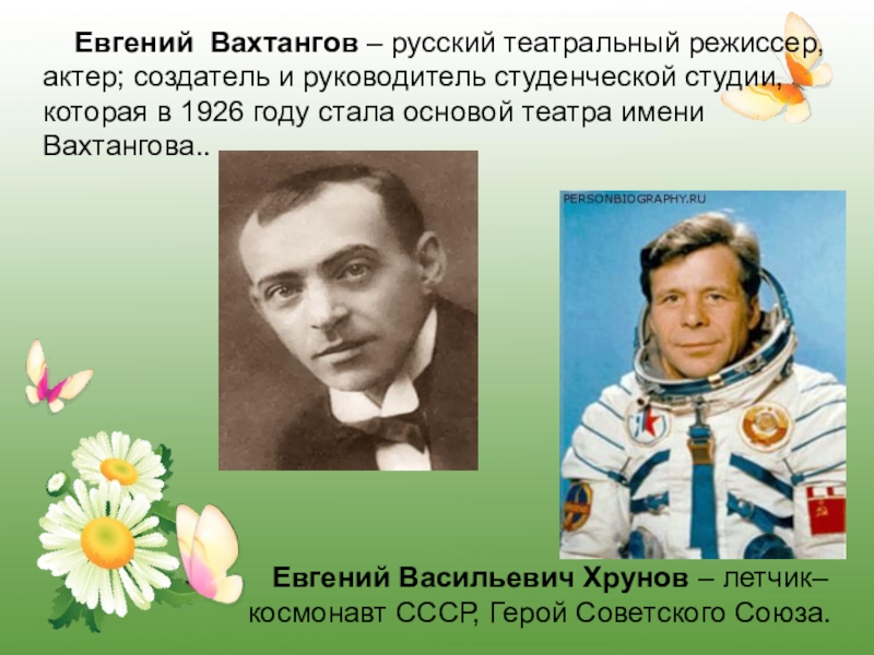 Слайд 13 Евгений Васильевич Хрунов – летчик–космонавт СССР, Герой Советского Союза.