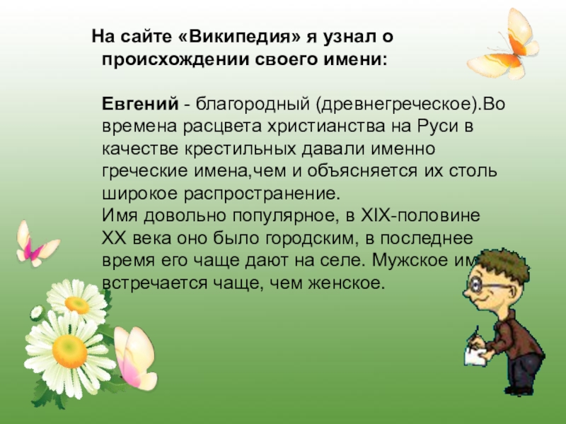 Слайд 7 На сайте «Википедия» я узнал о происхождении своего имени: