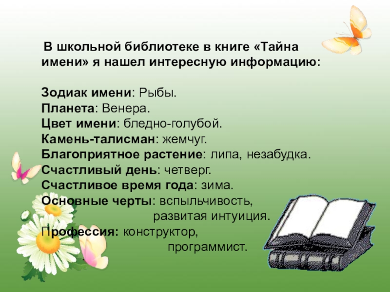 Слайд 8 В школьной библиотеке в книге «Тайна имени» я
