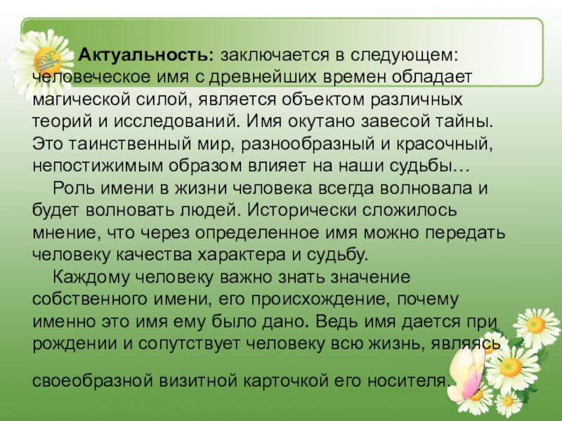 1. Расширить знания о значении своего имени и историю его происхождения.