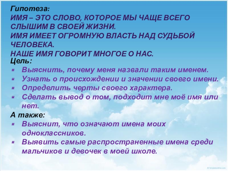 ИМЯ – ЭТО СЛОВО, КОТОРОЕ МЫ ЧАЩЕ ВСЕГО СЛЫШИМ В СВОЕЙ ЖИЗНИ.