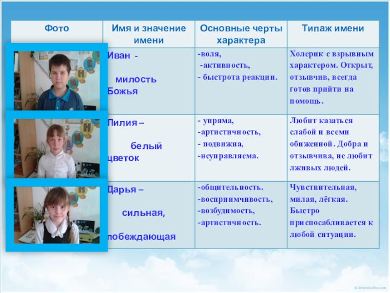 - другие учащиеся могут узнать, как можно определить значение их имён.