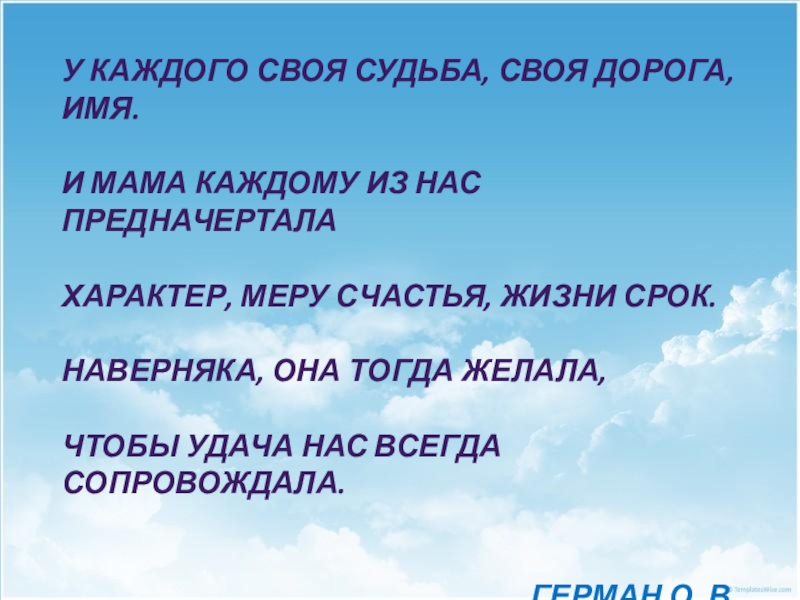 И МАМА КАЖДОМУ ИЗ НАС ПРЕДНАЧЕРТАЛА