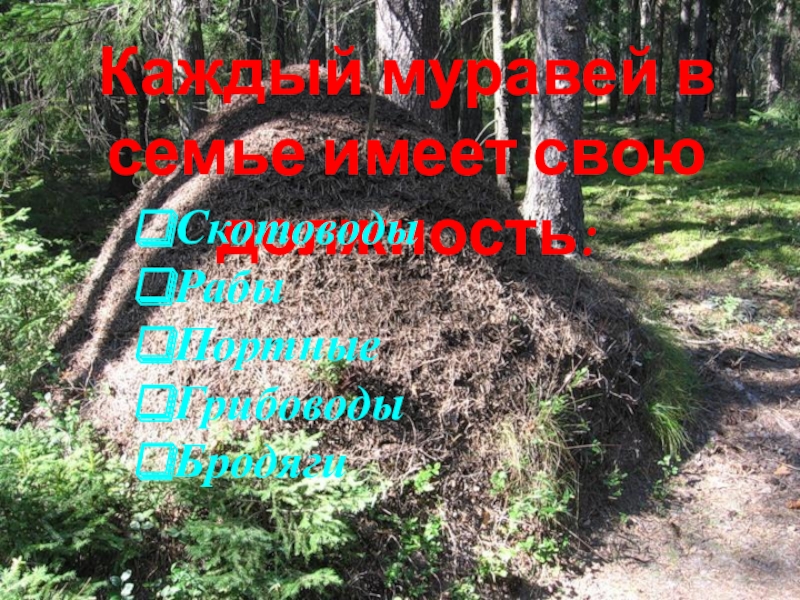 Слайд 14Каждый муравей в семье имеет свою должность: