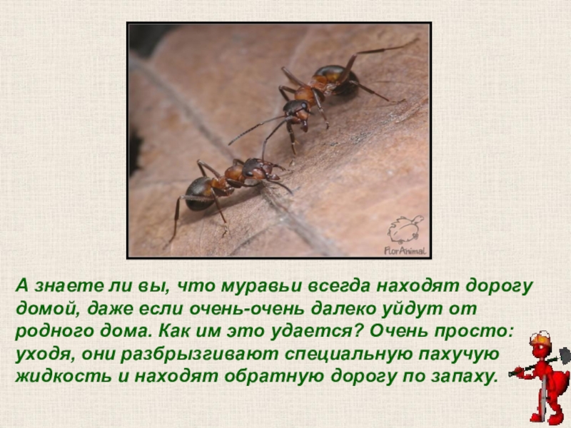 Слайд 12А знаете ли вы, что муравьи всегда находят дорогу домой, даже