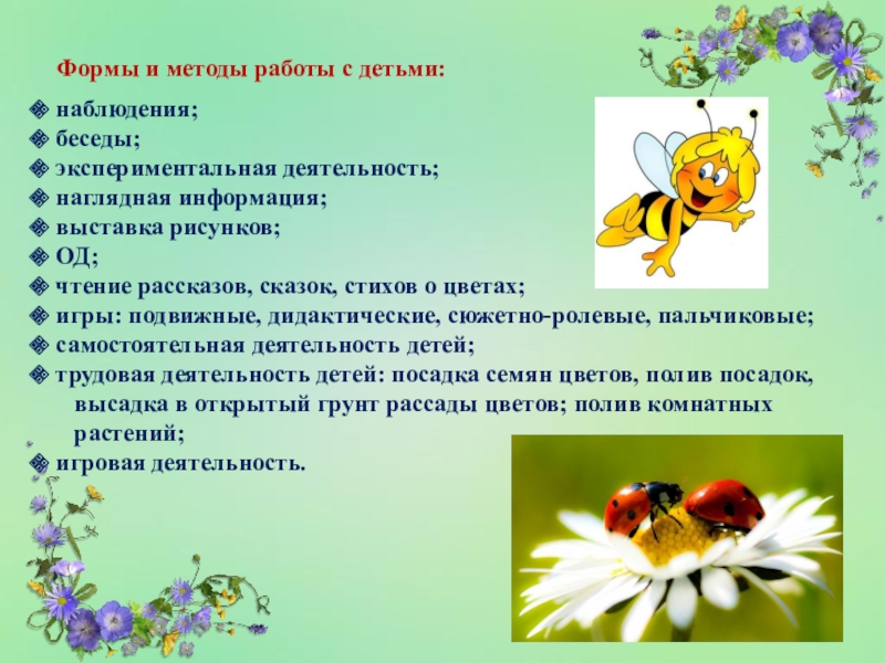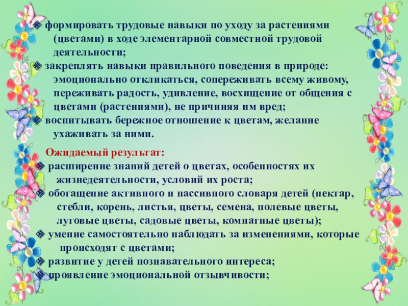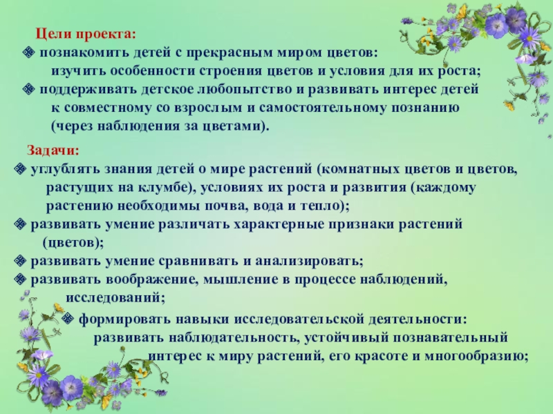расширение знаний детей о цветах, особенностях их