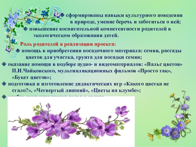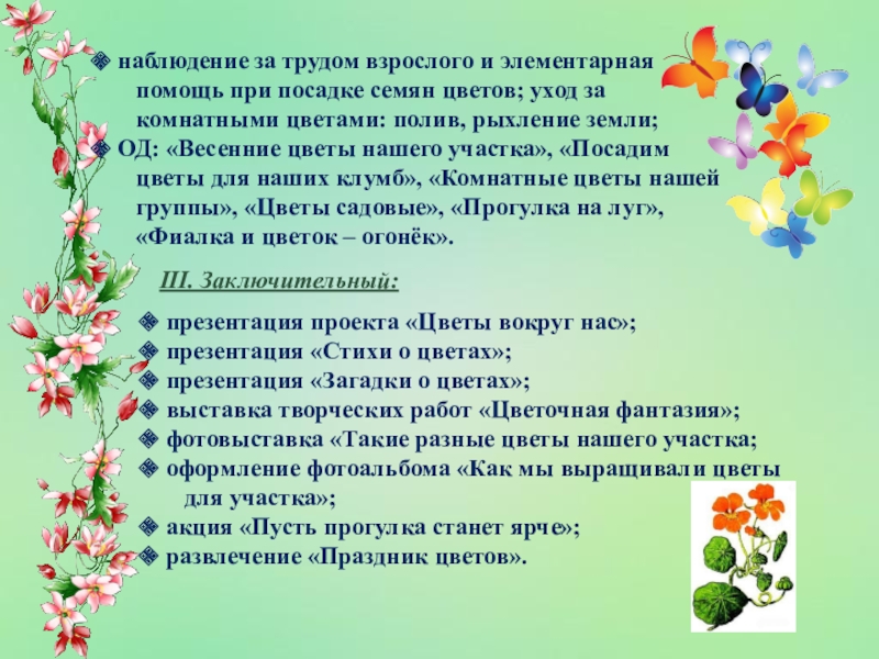 презентация проекта «Цветы вокруг нас»;