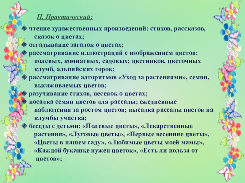 создание картотеки загадок, стихов о цветах;