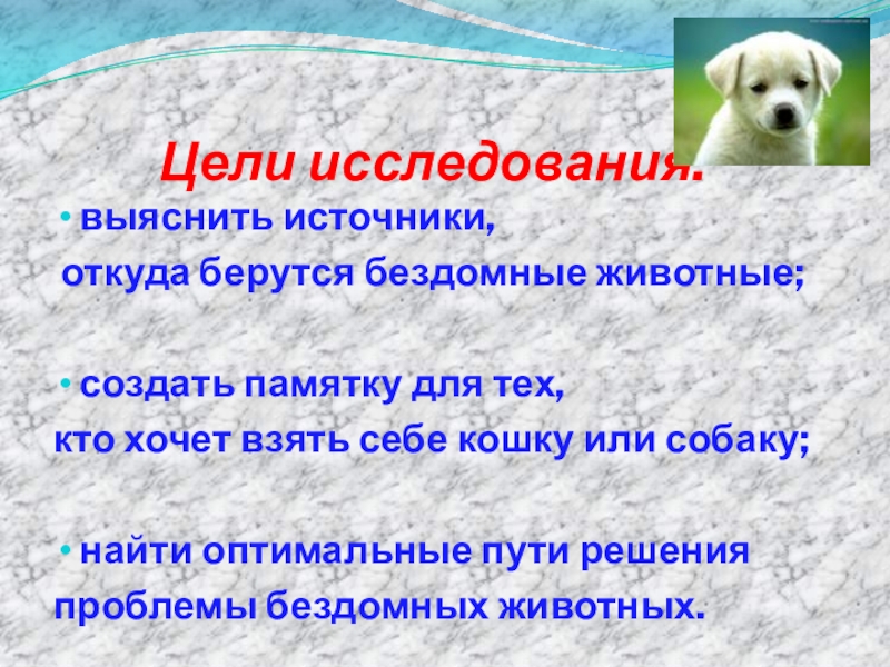 Слайд 2Этим исследованием я хочу добиться доброго отношения к четвероногим друзьям.