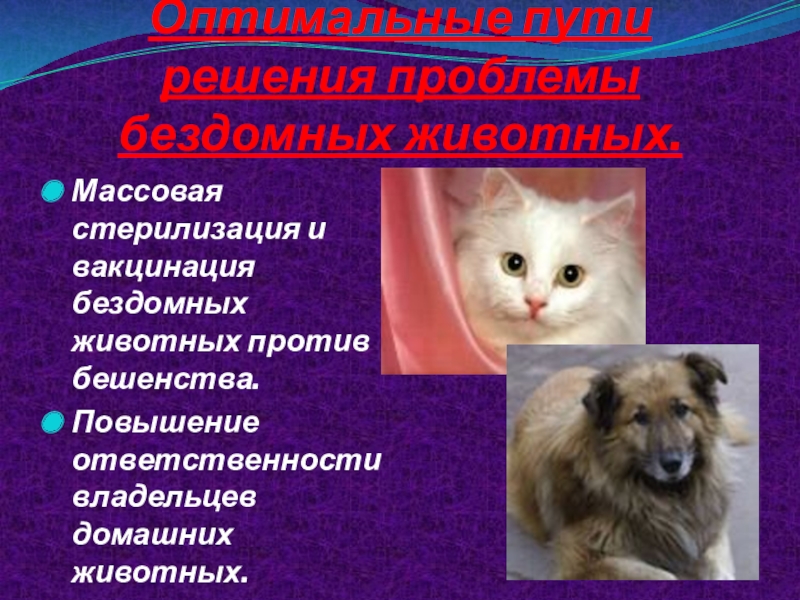 Слайд 16Оптимальные пути решения проблемы бездомных животных.