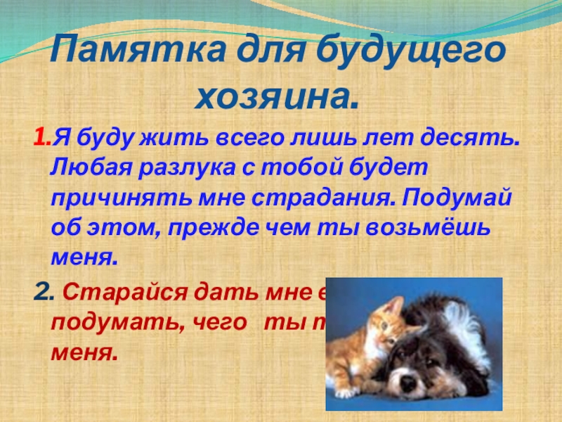 Памятка для будущего хозяина.