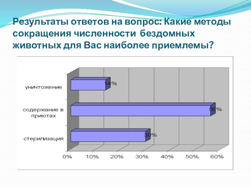Слайд 5Результаты ответов на вопрос: Какие методы сокращения численности бездомных животных для