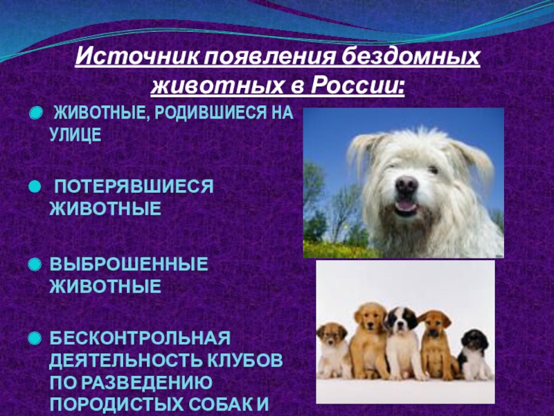 Слайд 9Источник появления бездомных животных в России: