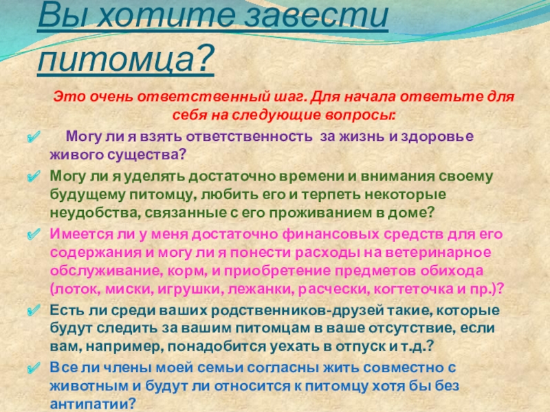 Могу ли я уделять достаточно времени и внимания своему будущему питомцу, любить его и терпеть некоторые неудобства, связанные с его проживанием в доме?