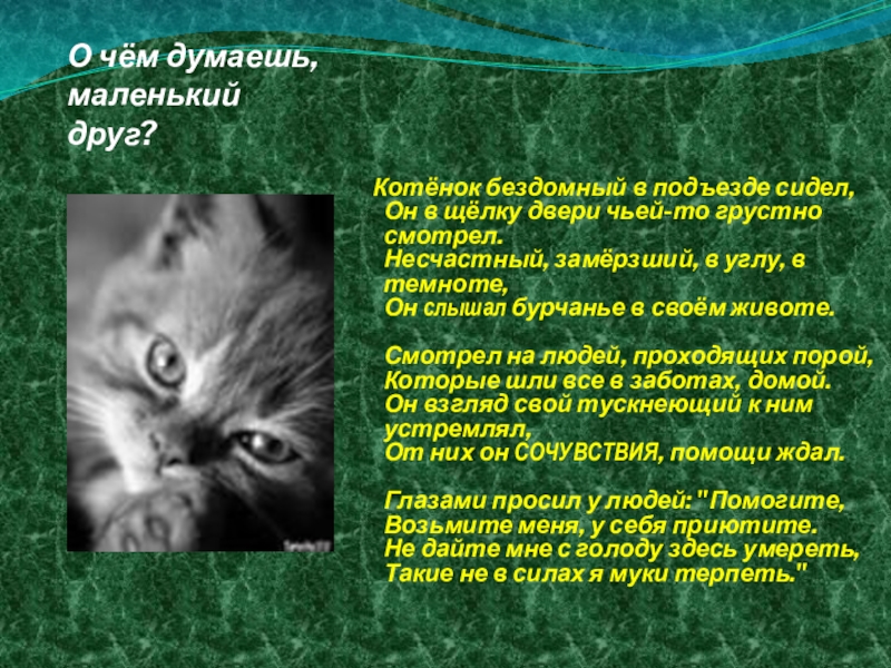 Котёнок бездомный в подъезде сидел,