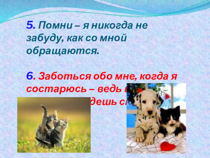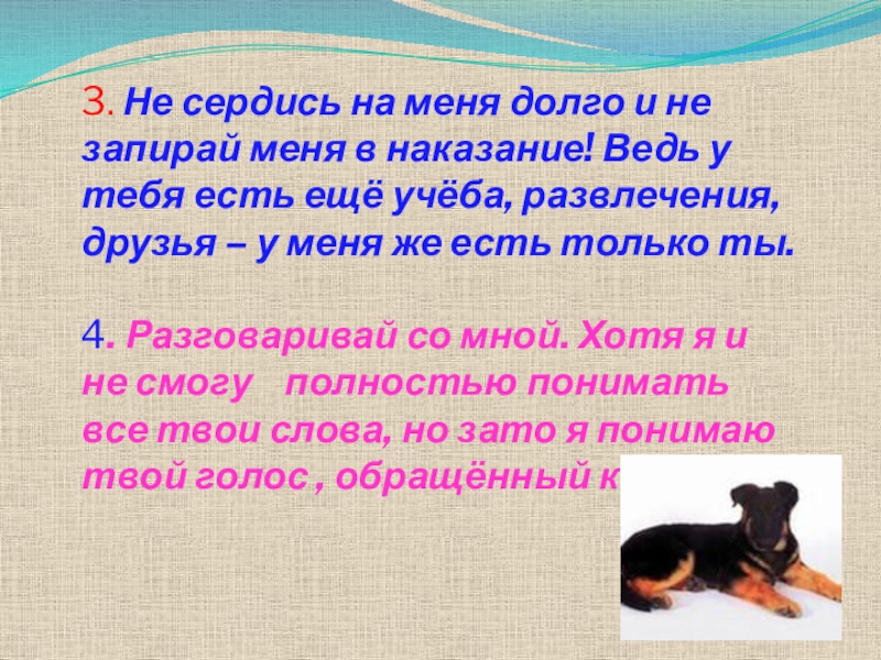 4. Разговаривай со мной. Хотя я и не смогу полностью понимать все твои слова, но зато я понимаю твой голос , обращённый ко мне.