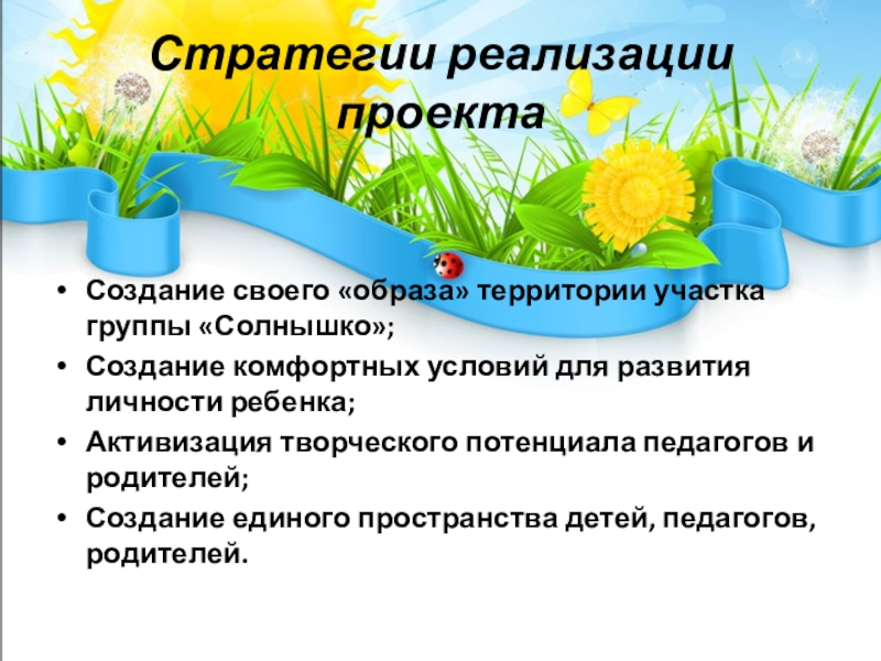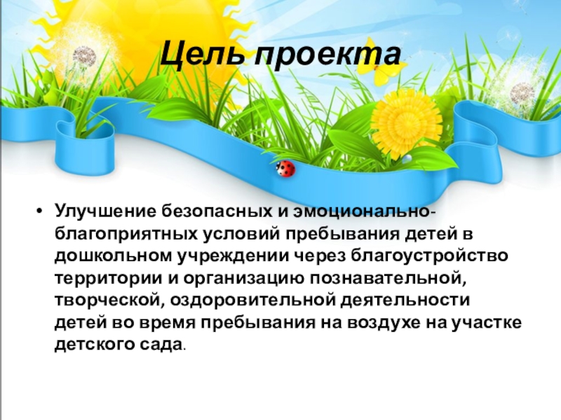 через благоустройство территории и организацию познавательной, творческой, оздоровительной деятельности детей во время пребывания на воздухе на участке детского сада.