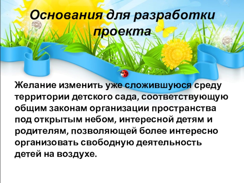 соответствующую общим законам организации пространства под открытым небом, интересной детям и родителям, позволяющей более интересно организовать свободную деятельность детей на воздухе.