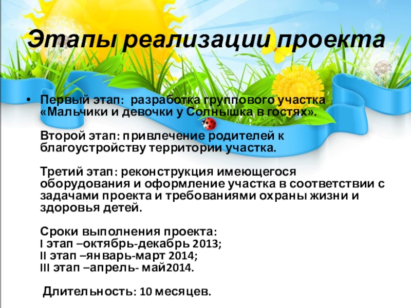 Третий этап: реконструкция имеющегося оборудования и оформление участка в соответствии с задачами проекта и требованиями охраны жизни и здоровья детей.