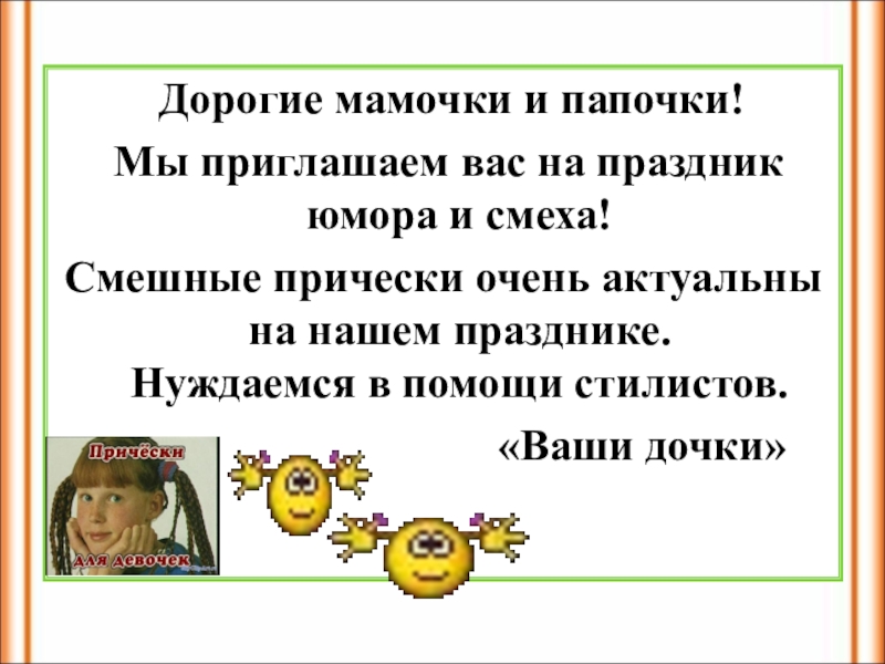 Объявление конкурса смешных причесок ( для девочек) и бабочек