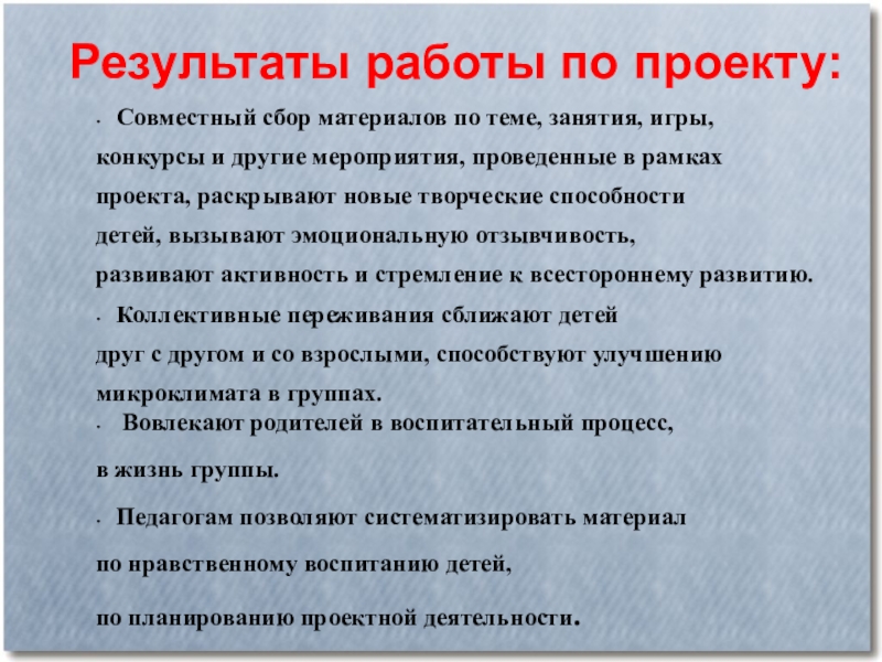 По характеру участия ребенка: участник от зарождения идеи до получения результата