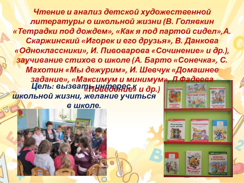 Цель: вызвать интерес к школьной жизни, желание учиться в школе.