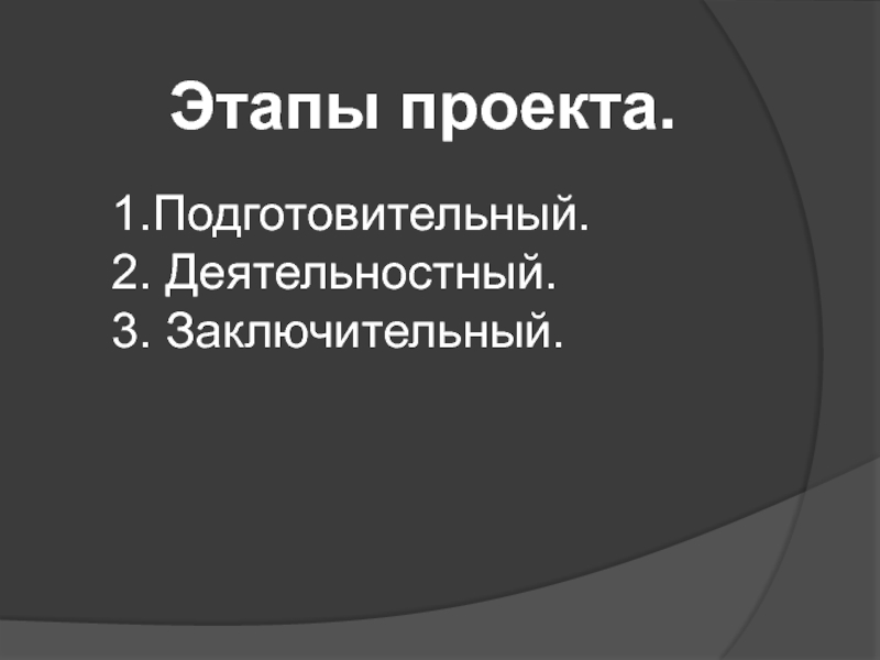 Этапы проекта.1.Подготовительный.2. Деятельностный.3. Заключительный.