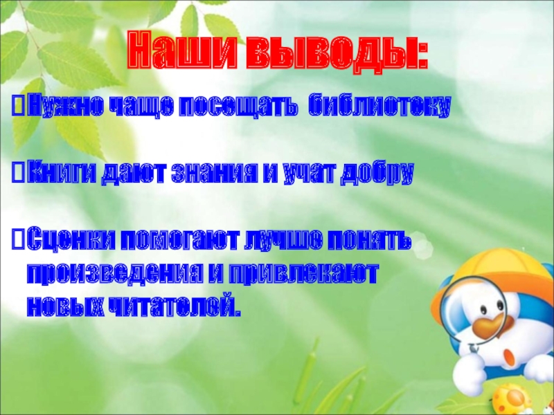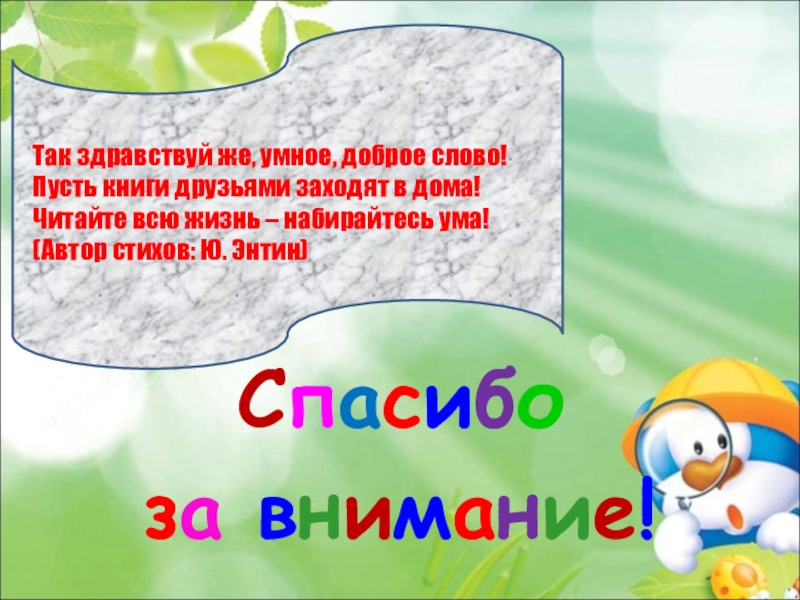 Это сайт презентаций, где можно хранить и обмениваться своими презентациями, докладами, проектами, шаблонами в формате PowerPoint с другими пользователями. Мы помогаем школьникам, студентам, учителям, преподавателям хранить и обмениваться учебными материалами.
