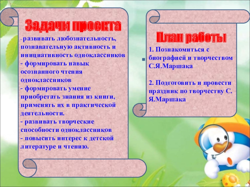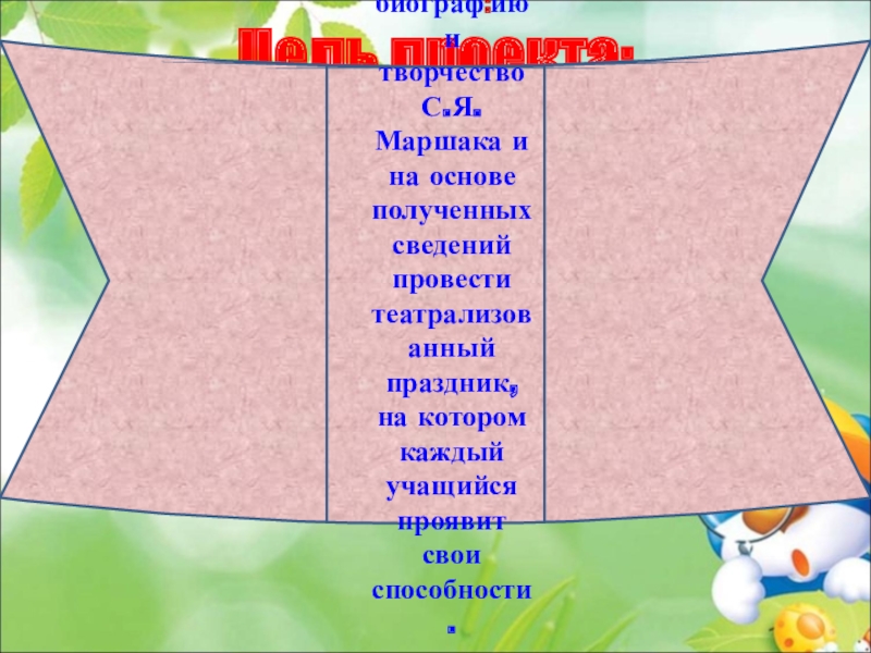 2. Подготовить и провести праздник по творчеству С.Я.Маршака